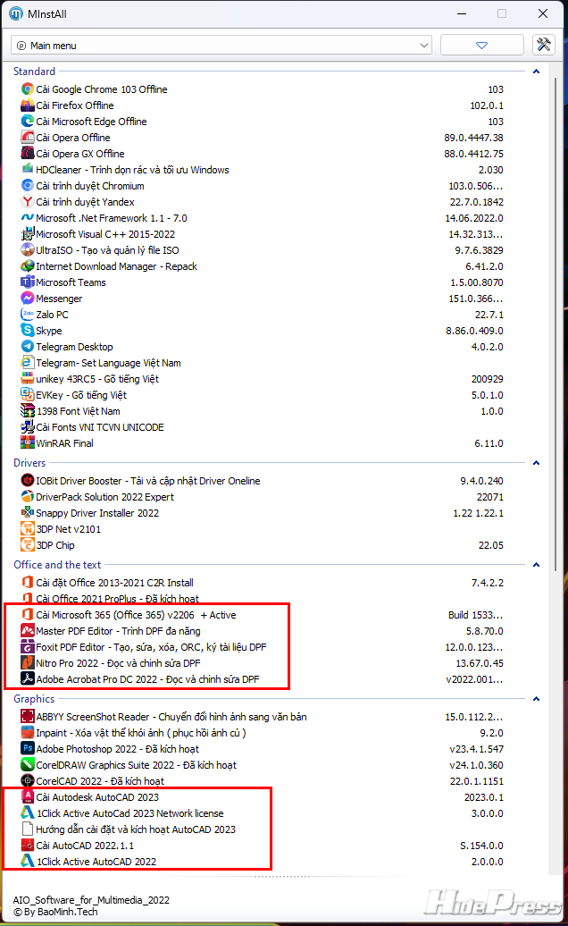 AIO Soft Update V10.1 nhá.Bản mới thêm AutoCAD 2022 – 2023 cho anh em cần, nếu không có nhu cầu CAD thì vẫn dùng bản V9 – 10 bình thường.Dung lượng 28.3GB ( 2 bộ CAD gần 10Gb rồi ) Lưu ý AutoCAD bản cài đặt, khi cài xong chạy công cụ 1click để kích hoạt.