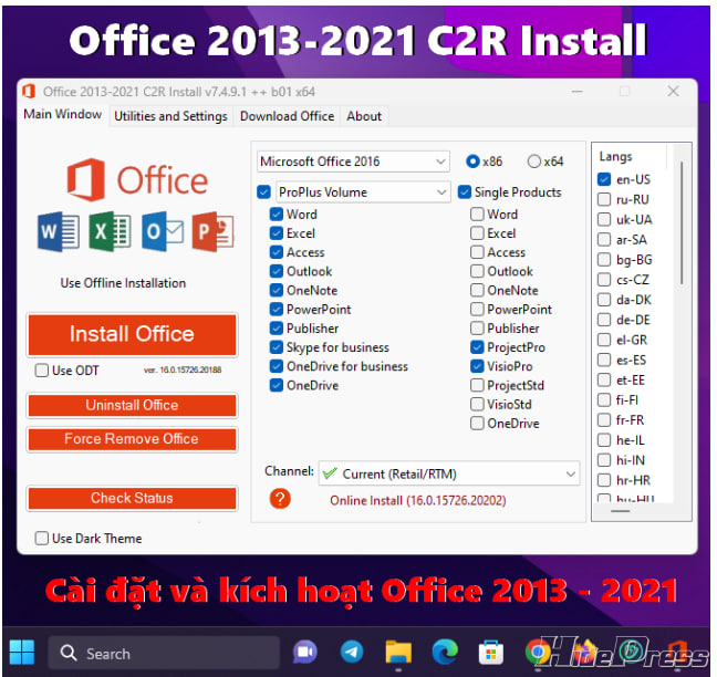 Office 2013-2021 C2R Install - Office 2013-2021 C2R Install v7.5.0.1 (x86/x64) – Cài đặt và kích hoạt Office