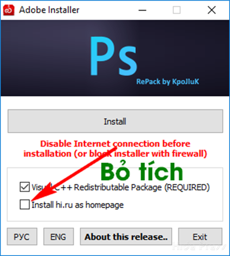 - Adobe Photoshop CC 2018 v19.0.0.165_x64Sau khi tải xong -> Ngắt kết nối mạng